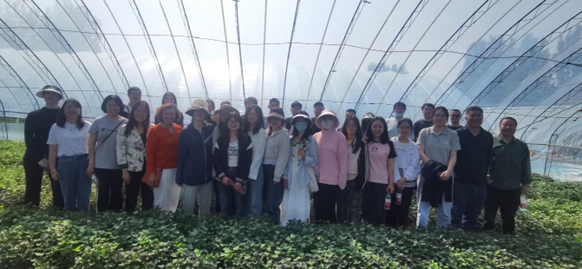 科技小院负责人赵波副教授详细介绍了甘薯脱毒种苗繁育体系中的各个技术环节。师生们详细听取了科技小院和博士农场的运行模式的介绍,考察了甘薯脱毒种苗繁育实验室和工厂化育苗场地的生产情况,对科技小院和博士农场在促进农民增收方面进行了深入交流。同时与在科技小院驻点的研究生进行了交流,鼓励他们深入田间地头和村屯农家,在服务乡村振兴中解民生、治学问。