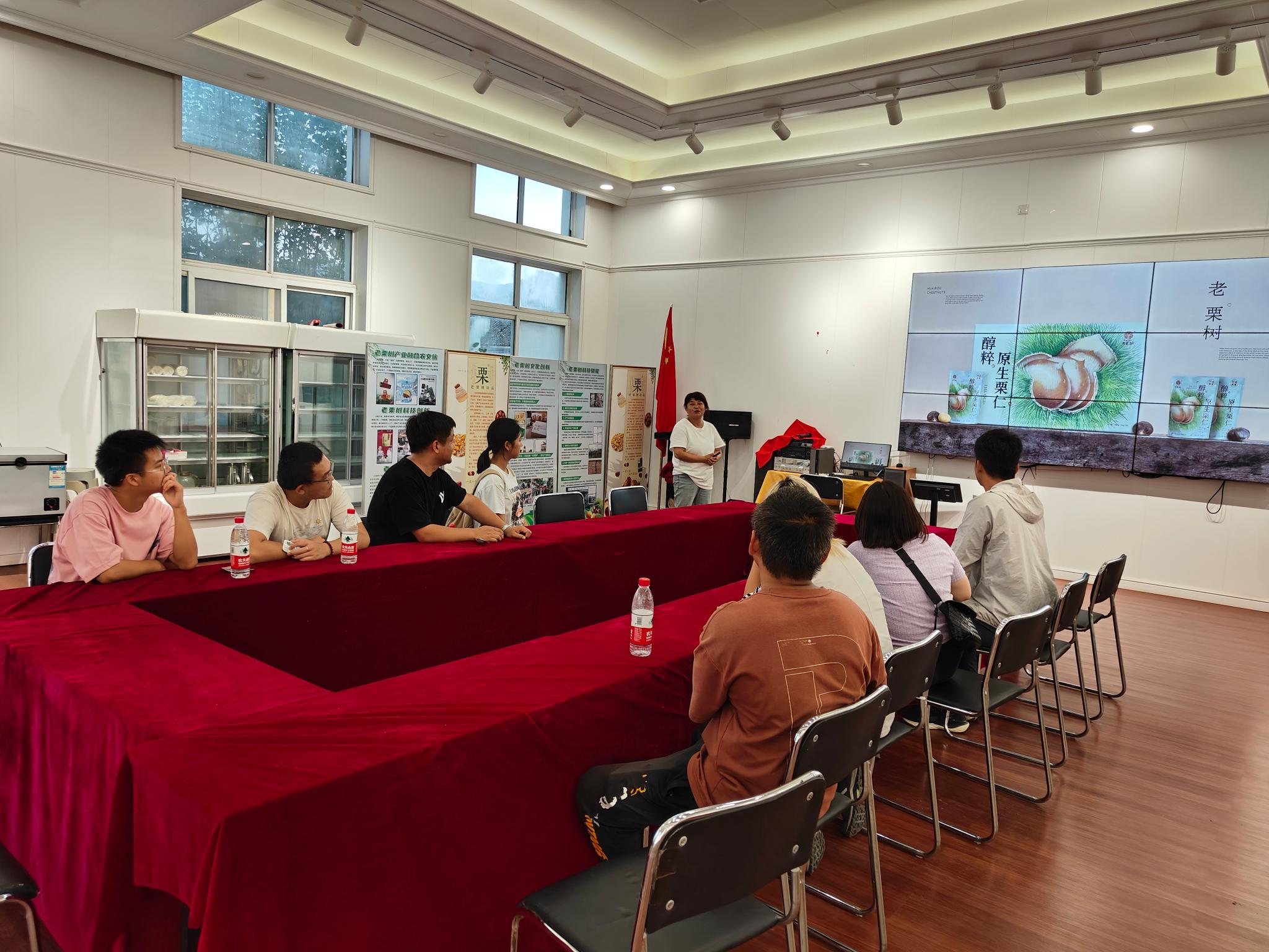 在怀柔板栗试验与推广站,员工们与技术员充分交流,学习板栗种植的先进技术和管理经验。负责人介绍板栗产业如何带动当地农民增收,以及如何通过科技创新提升农产品的附加值。
