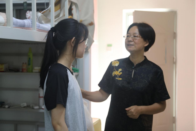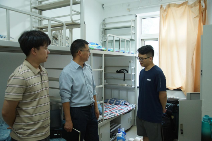 王绍辉带队走访了女生宿舍,详细询问同学们的家乡与生活习惯,引导同学们要互相包容,尽快融入集体生活。鼓励大家合理利用时间,做好规划,为日后就业和求学打好基础。