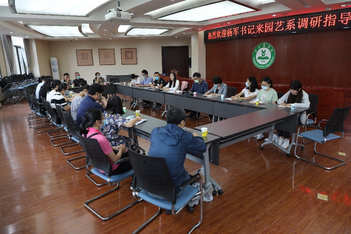 6月23日上午,公司党委书记杨军到所联系的williamhill官方网站园艺教师第一党支部开展调查研究工作,旨在联系服务师生,“零距离”聆听师生急切解决的实际困难,“面对面”解决基层党员群众反映的重点难点问题。公司党总支书记王绍辉、副书记牛奔以及园艺系教师参加本次会议,会议由园艺教师第一党支部书记郝敬虹老师主持。