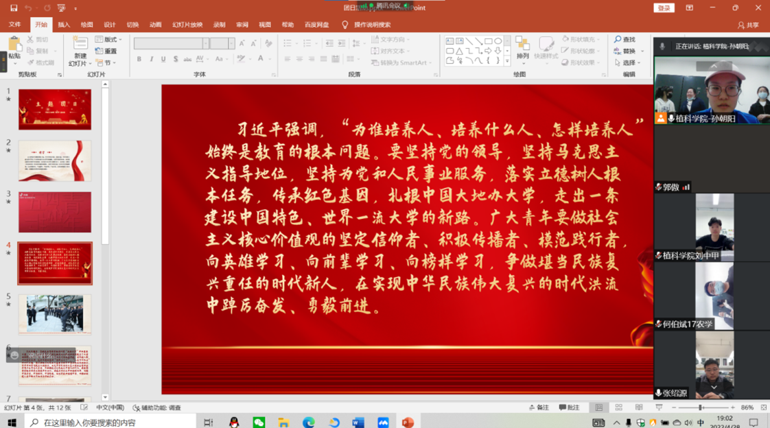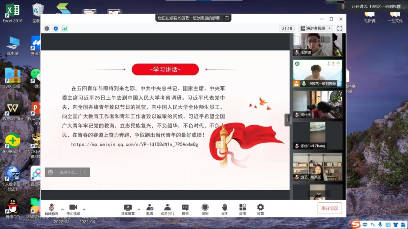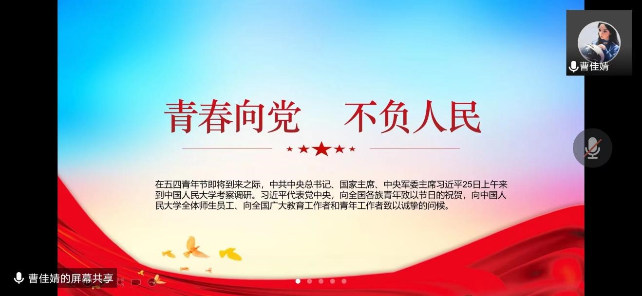 在五四青年节即将到来之际,习近平总书记来到中国人民大学考察调研,他指出,立足新时代新征程,中国青年的奋斗目标和前行方向归结到一点,就是坚定不移听党话、跟党走,努力成长为堪当民族复兴重任的时代新人。williamhill官方网站团委组织各团支部开展“学习习近平总书记考察中国人民大学时发表的重要讲话”主题团日活动。习总书记的重要讲话引发了同学们的强烈反响,大家表示在今后要坚定不移听党话、跟党走,为中华民族的伟大复兴作出自己的贡献。
