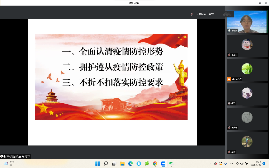 为深入学习贯彻习近平总书记关于疫情防控的重要指示精神,深化全院师生对当前疫情防控形势复杂性和严峻性的认识,贯彻落实北京市和公司疫情防控相关政策,5月23日晚,williamhill官方网站通过腾讯会议召开全院大会,公司党总支书记王绍辉和经理秦岭为师生讲授了一堂生动的疫情防控“大思政课”。公司全体教职工、博士后、联培博士和在校员工参加了会议,会议由秦岭经理主持。