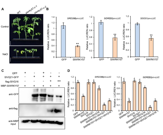 SlWRKY57-SlVQ21/SlVQ16模块调控番茄响应盐胁迫的分子机制