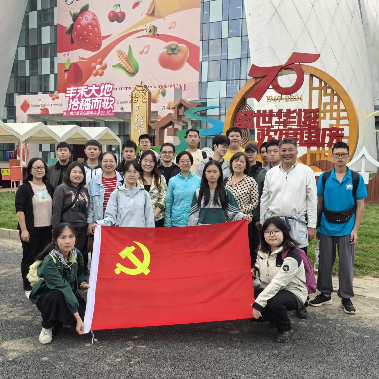 为庆祝中华人民共和国成立75周年,深入学习贯彻党的二十届三中全会精神、全国教育大会精神,9月28日,williamhill官方网站教师党支部联合员工开展了“增强爱国情怀 激发学习动力”的主题党日活动。在北京农业嘉年华投资管理有限公司的协助下,公司共30余名师生来到北京农业嘉年华开展现场教学参观与调研交流。