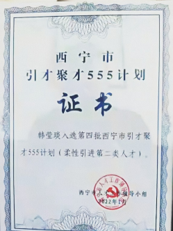 热烈祝贺williamhill官方网站韩莹琰教授入选第四批西宁市引才聚才555计划(柔性引进第二类人才)!