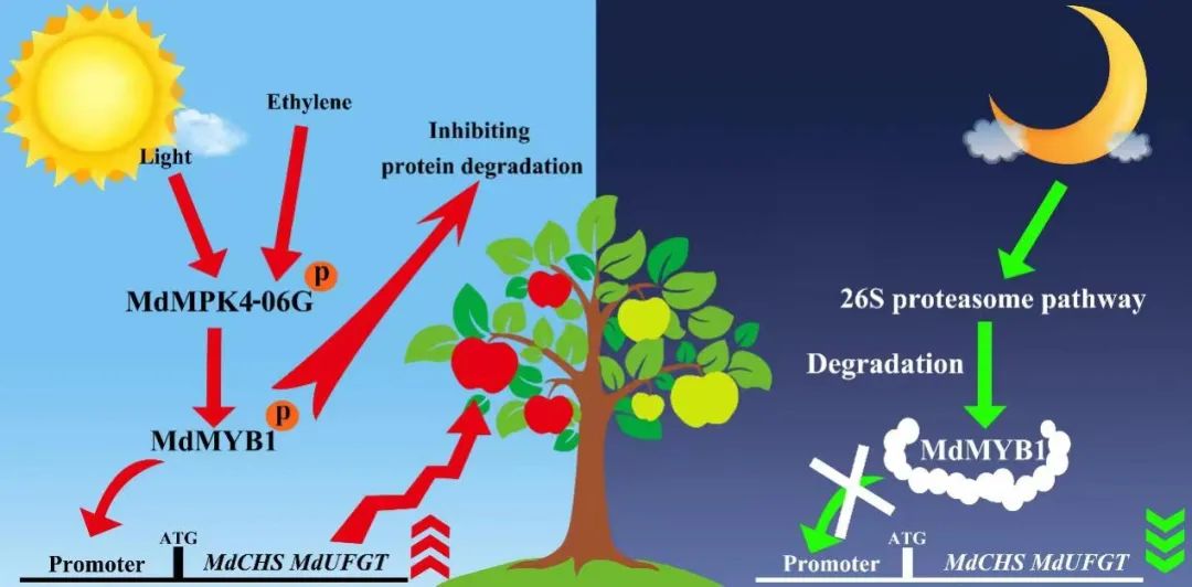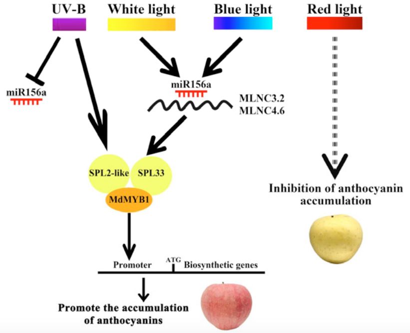 2021年7月16日,williamhill官方网站姚允聪教授/田佶教授团队在The Plant Cell发表了题为“The Long Noncoding RNA MdLNC499 Bridges MdWRKY1 and MdERF109 Function to Regulate Early-Stage Light-Induced Anthocyanin Accumulation in Apple Fruit”文章。该研究揭示了光诱导lncRNA参与苹果果皮光照早期花色素苷积累的分子调控机制。