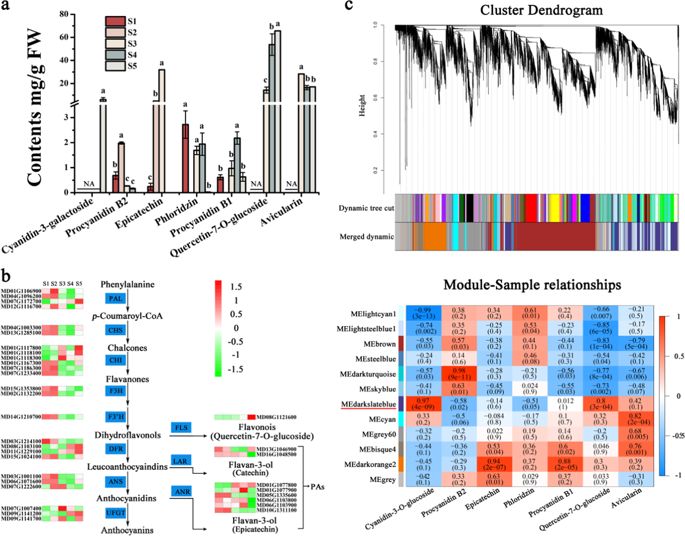 2020年2月1日,Horticulture Research在线发表了williamhill官方网站姚允聪教授/田佶教授团队题为MdMYB8 is associated with flavonol biosynthesis via the activation of the MdFLS promoter in the fruits of Malus crabapple 的研究论文。该研究对五个不同发育时期的观赏海棠品种‘火焰’果皮进行转录组测序,利用KEGG pathway分析发现在果实发育过程中植物激素参与调节黄酮醇的生物过程。通过WGCNA和酵母单杂交试验筛选发现MdMYB8可能参与调控黄酮醇生物合成,并进一步通过在苹果愈伤组织中过表达和干扰MdMYB8基因,进行了功能验证。最终发现MdMYB8通过调控MdFLS 基因的表达,调控黄酮醇生物合成。