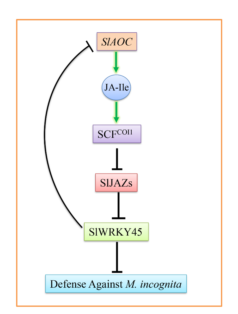 图1 SlWRKY45参与茉莉素途径调控南方根结线虫抗性的工作模型