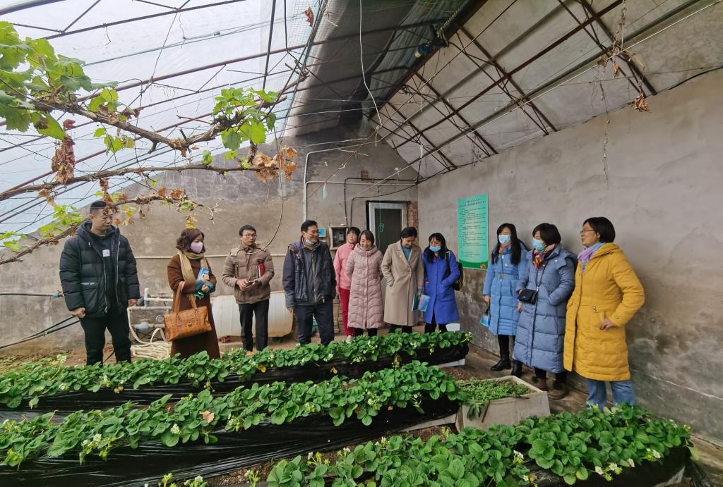 会后,一行人来到红泥乐农场(北京圣泉农业专业合作社基地),参观了水果、芳香蔬菜和食药两用蔬菜大棚。