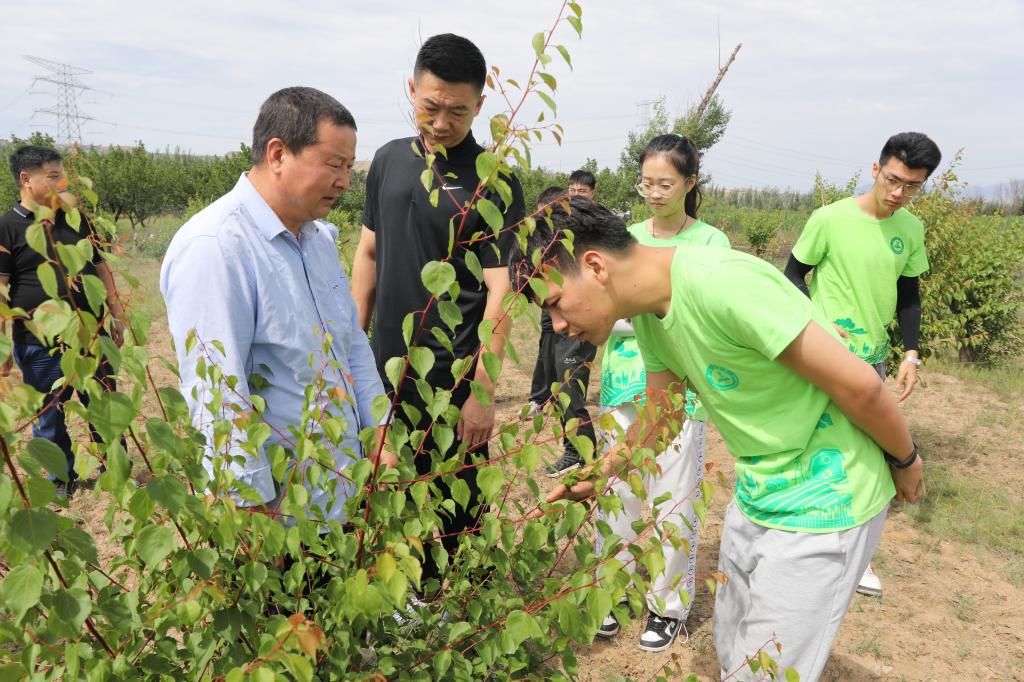 推广杏树高接换头新技术。蔚县是全国杏扁的传统产区和主产区之一,已有近50年的栽种历史。实践团成员们跟随着当地农村农业局赵帅老师的脚步,考察了当地的杏树种植情况。了解到杏扁产业单一,杏树开花时“5年4冻”等问题,严重地影响了农民的收入。董清华教授带领实践团成员结合当地实际情况,推广实施了杏花防冻和嫁接技术,提高杏树的抗性,同时建议根据市场需求,灵活选择接穗品种,扩大杏树的可栽培范围,为农民创收提供了实质性的帮助。并对杏树的嫁接技术推广进程、春季灌水等方面也提出改进意见。